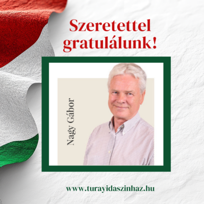 Szeretettel gratulálunk Nagy Gábor művész úrnak, aki a március 15-i nemzeti ünnep alkalmából átvette a Jászai Mari-díjat a Pesti Vigadóban. Örülünk sikereinek s boldogok vagyunk, hogy társulatunkban és örökös tagjaink között tudhatjuk őt!